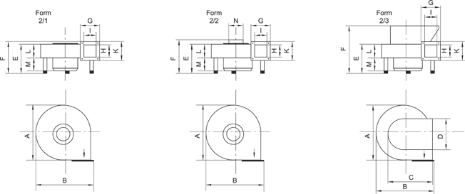 DIMENSIONS FOR MOUNTING OF ORGAN BLOWERS OF TYPE LVM2 3600 rotations/minute 60 Hz Pressure range: 750-800 Pa Type: 1-ph.A.C.: 120V Unit: Inch (in) TYPE LVM2/1-003-075 LVM2/2-003-075 LVM2/3-003-075 LVM2/1-005-080 LVM2/2-005-080 LVM2/3-005-080 A 10-7/16" 10-7/16" 10-7/16" 12-5/8" 12-5/8" 12-5/8" B 11-1/32" 11-1/32" 11-1/32" 13-3/16" 13-3/16" 13-3/16" C - - 9-7/16" - - 11-1/32" D - - 7-3/64" - - 7-3/64" E 5" 5" 5" 6-1/8" 6-1/8" 6-1/8" F 5-19/32" 5-13/16" 8-7/8" 6-6/8" 6-57/64" 9-7/16" G 3-1/32" 3-1/32" 3-1/32" 4-1/32" 4-1/32" 4-1/32" H 1-29/64" 1-29/64" 1-29/64" 2-3/64" 2-3/64" 2-3/64" I 1-37/64" 1-37/64" 1-37/64" 2-3/4" 2-3/4" 2-3/4" K 3-1/32" 3-1/32" 3-1/32" 4-1/32" 4-1/32" 4-1/32" L 2-3/64" 2-3/64" 2-3/64" 3-5/32" 3-5/32" 3-5/32" M 2-53/64" 2-53/64" 2-53/64" 2-53/64" 2-53/64" 2-53/64" N - 3-1/32" - - 3-1/32" -